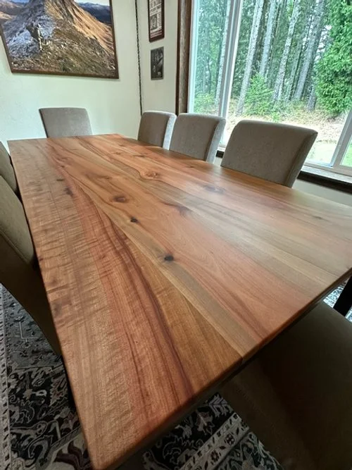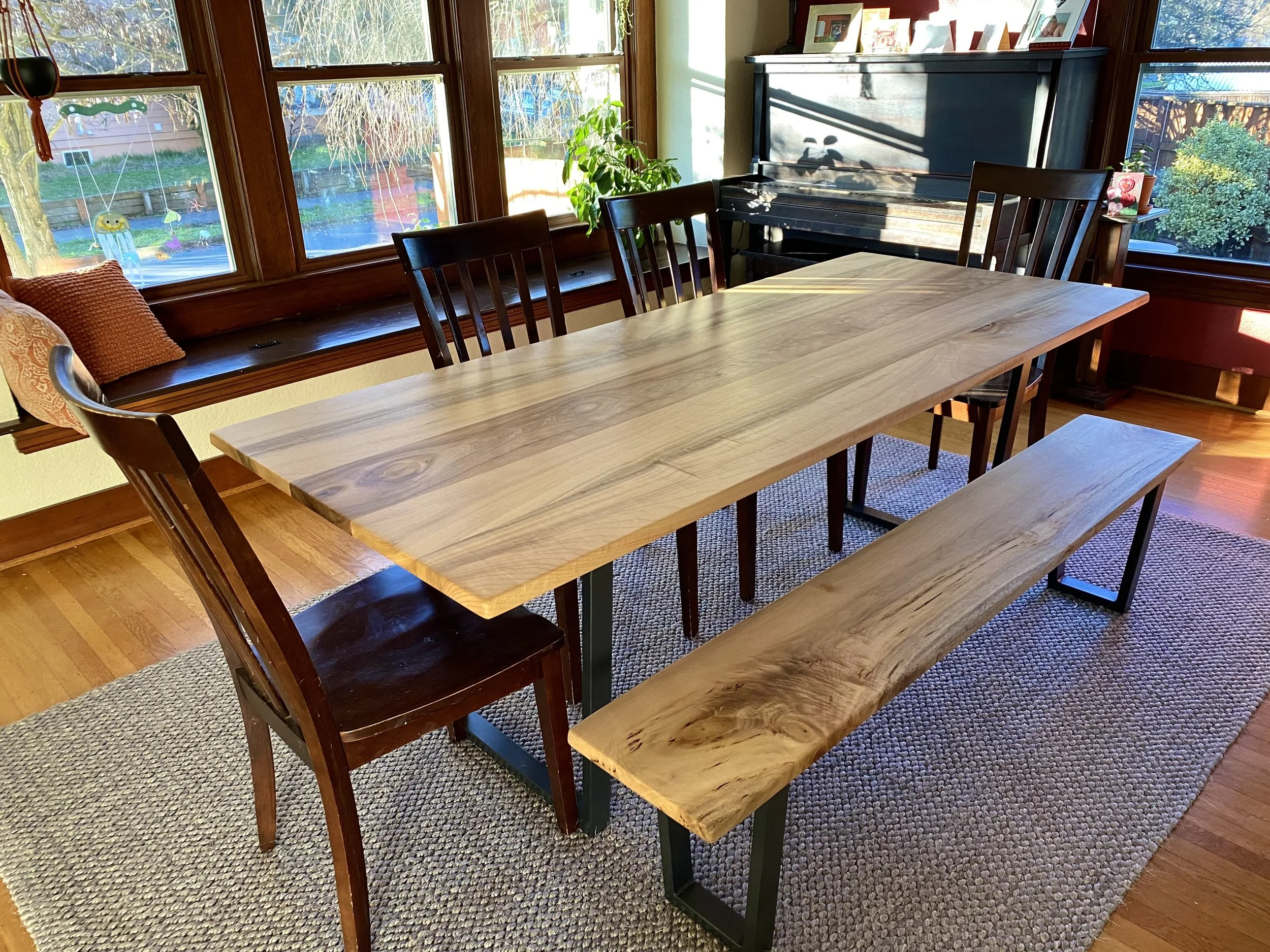 At Stumptown Reclaimed, every dining table is built by hand in Portland, Oregon, from locally salvaged hardwoods chosen for their unique character. Each wood tells a different story — walnut with its rich chocolate tones, quartersawn white oak with its ray fleck detail, rare Oregon myrtle with its dramatic swirls, and madrone with its bold red streaks.