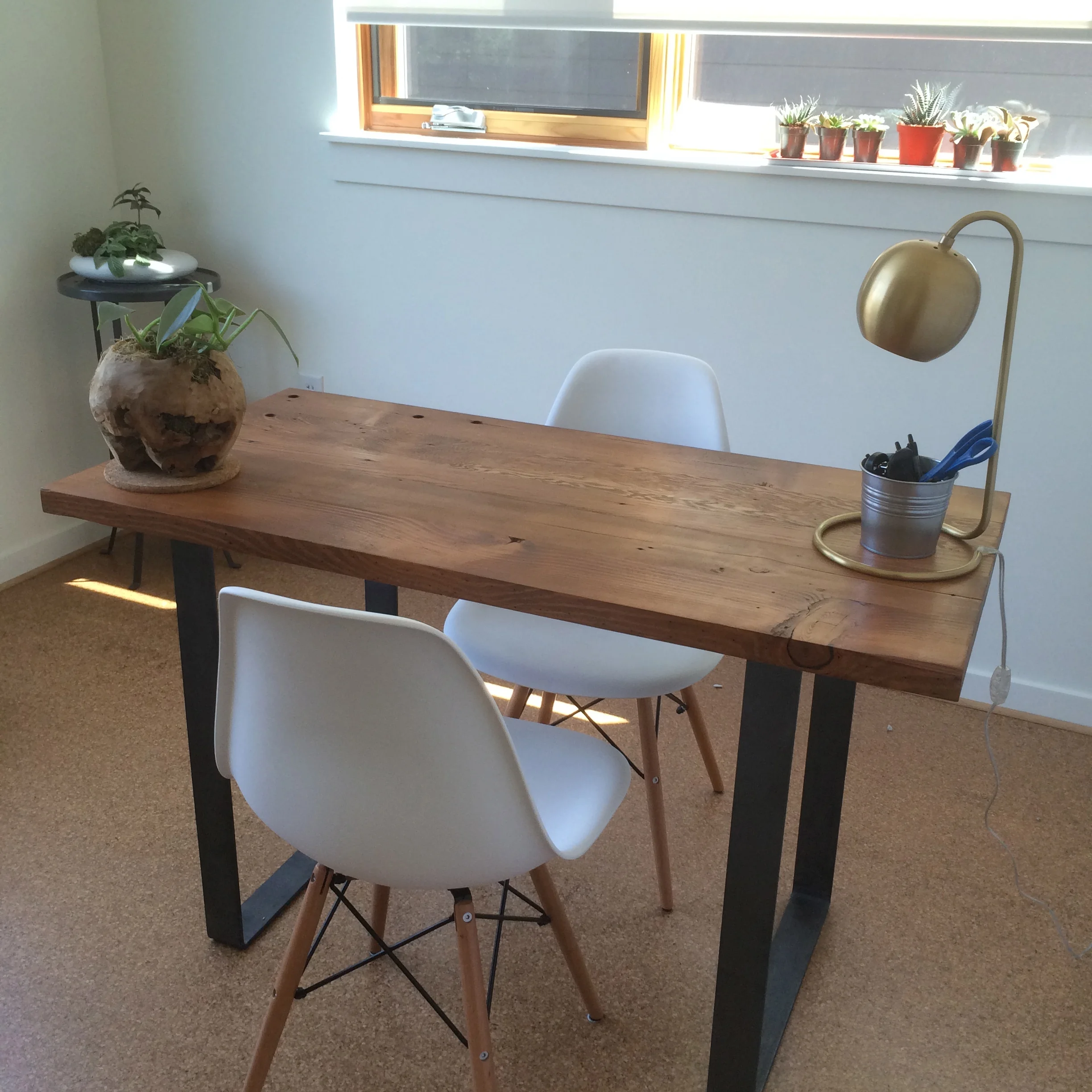 Our custom desks are built by hand in Portland from locally salvaged and reclaimed hardwoods, paired with premium steel legs for strength and style. Each desk is made to order, with sizes tailored to your workspace and finishes that bring out the natural character of the wood. Whether you are outfitting a home office, creative studio, or professional space, every desk combines lasting durability with the beauty of real wood.