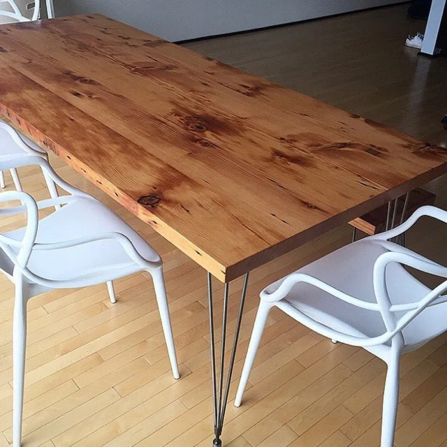 Reclaimed fir is known for its warm golden tones, straight grain, and the rich surface texture that comes only with age. Nail holes, oxidation marks, and other imperfections are reminders of its past life, turning every table into a conversation piece. Over the years, the wood has seasoned naturally, giving it stability and a depth of color that modern fir can’t match.