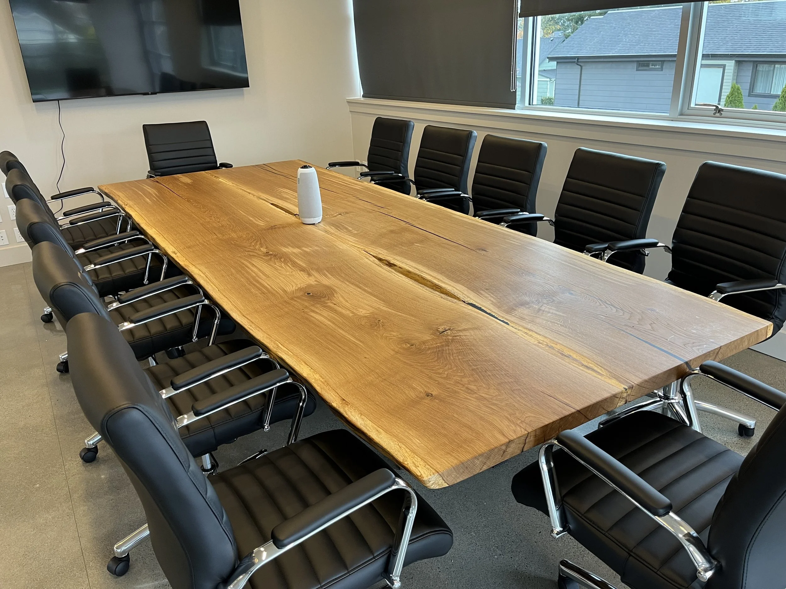 Live Edge — The natural edge of the tree is preserved, giving your table an organic one-of-a-kind silhouette. White oak live edge has a particularly clean, architectural quality that works beautifully in modern spaces.